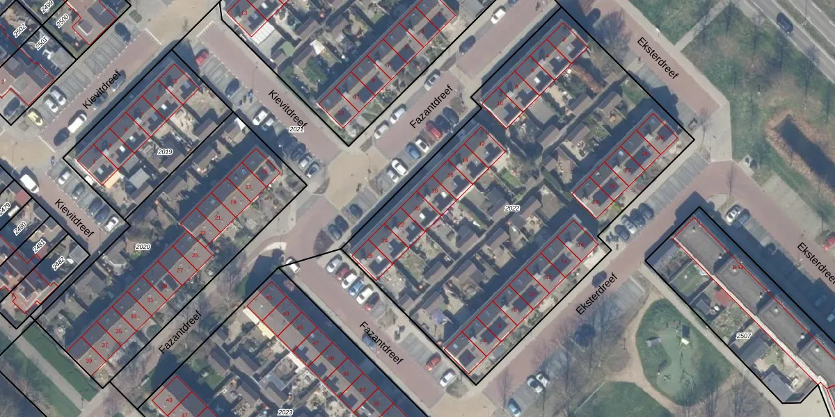 Fazantdreef 20 is gelegen op kadastraal perceel WDV01C2022. Deze kadastrale aanduiding is uniek en wordt gebruikt door het Kadaster om eigendomsrechten en andere zakelijke rechten vast te leggen. Het perceel maakt onderdeel uit van de kadastrale gemeente Waddinxveen.