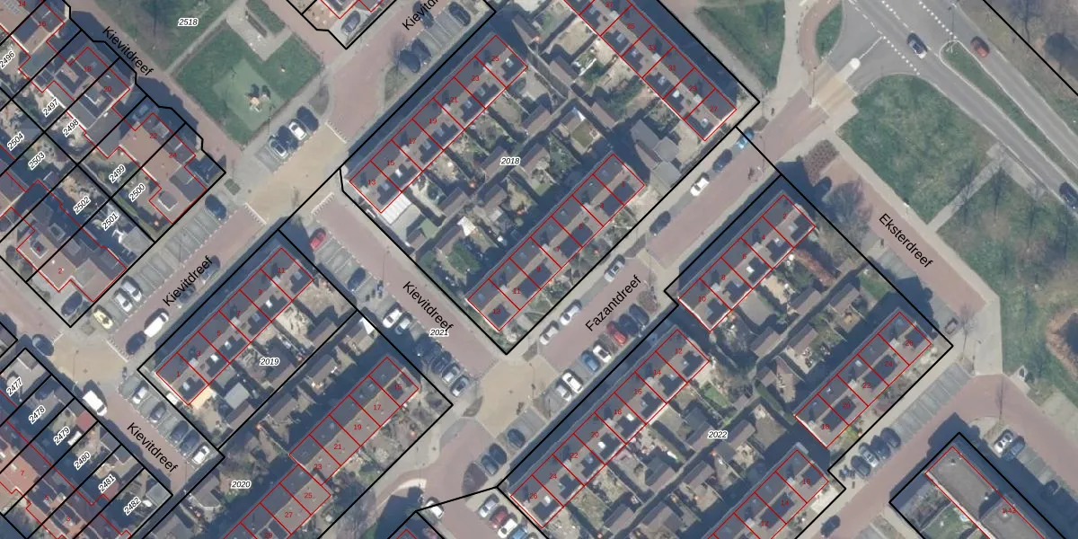 Fazantdreef 9 is gelegen op kadastraal perceel WDV01C2018. Deze kadastrale aanduiding is uniek en wordt gebruikt door het Kadaster om eigendomsrechten en andere zakelijke rechten vast te leggen. Het perceel maakt onderdeel uit van de kadastrale gemeente Waddinxveen.