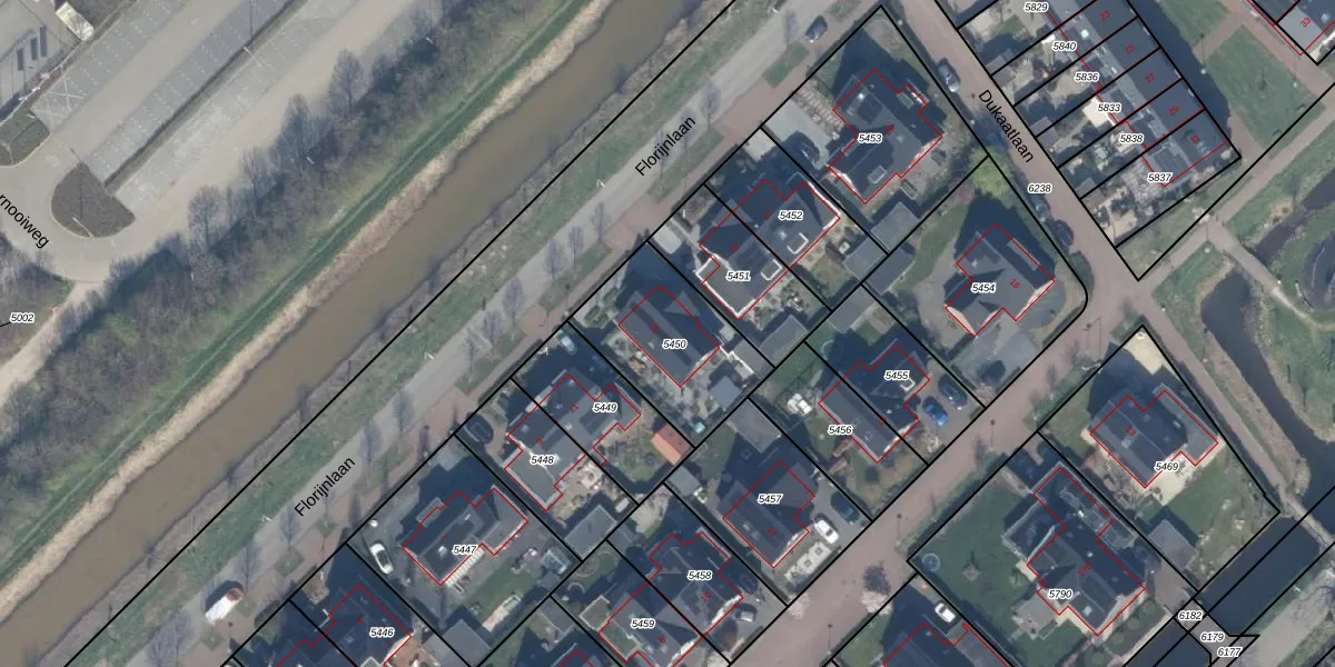 Florijnlaan 13 is gelegen op kadastraal perceel WDV01C5450. Deze kadastrale aanduiding is uniek en wordt gebruikt door het Kadaster om eigendomsrechten en andere zakelijke rechten vast te leggen. Het perceel maakt onderdeel uit van de kadastrale gemeente Waddinxveen.