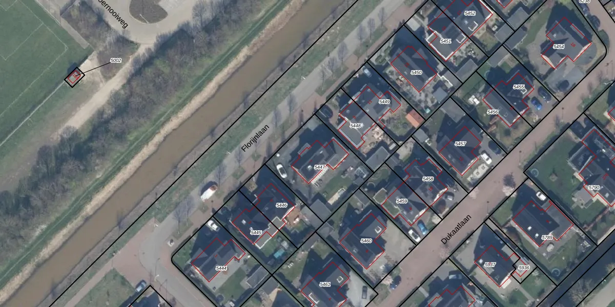 Florijnlaan 7 is gelegen op kadastraal perceel WDV01C5447. Deze kadastrale aanduiding is uniek en wordt gebruikt door het Kadaster om eigendomsrechten en andere zakelijke rechten vast te leggen. Het perceel maakt onderdeel uit van de kadastrale gemeente Waddinxveen.