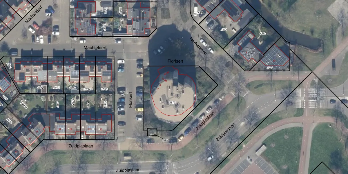 Floriserf 43 is gelegen op kadastraal perceel WDV01C2872. Deze kadastrale aanduiding is uniek en wordt gebruikt door het Kadaster om eigendomsrechten en andere zakelijke rechten vast te leggen. Het perceel maakt onderdeel uit van de kadastrale gemeente Waddinxveen.