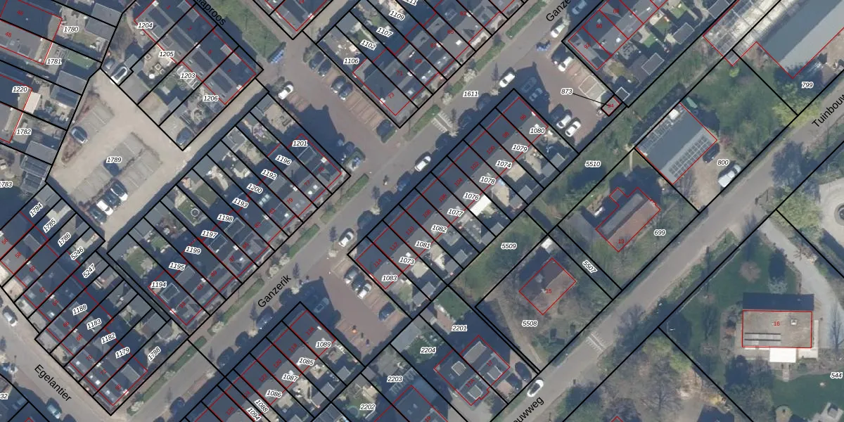 Het perceel waarop Ganzerik 108 staat heeft een oppervlakte van 118 m². Dit is een middelgroot perceel. De perceeloppervlakte wordt geregistreerd door het Kadaster. Gedetailleerde informatie over de maten van dit perceel kunt u vinden in het rapport Kadastrale kaart met maatvoering van Ganzerik 108.