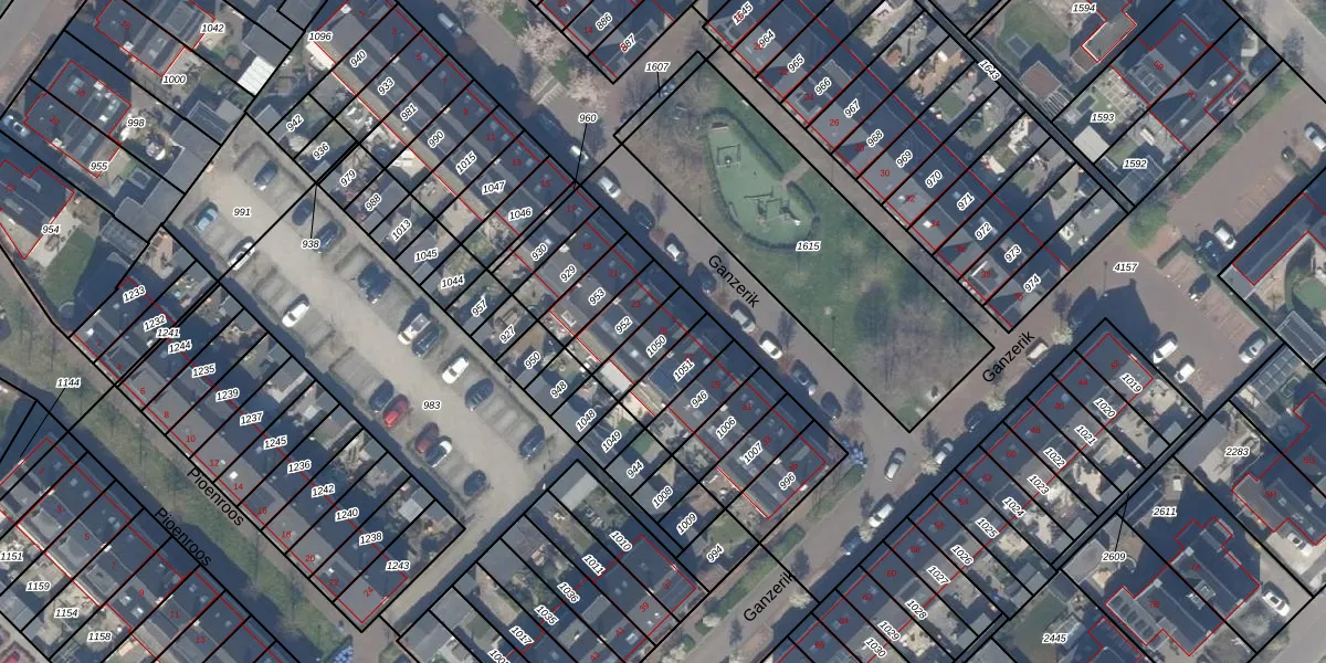 Het perceel waarop Ganzerik 25 staat heeft een oppervlakte van 108 m². Dit is een middelgroot perceel. De perceeloppervlakte wordt geregistreerd door het Kadaster. Gedetailleerde informatie over de maten van dit perceel kunt u vinden in het rapport Kadastrale kaart met maatvoering van Ganzerik 25.