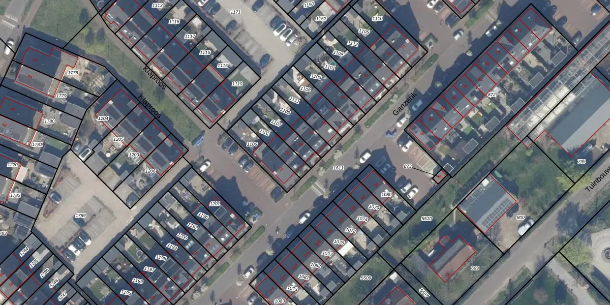 Gebruik de zoekbalk of klik op een perceel voor informatie over de adressen binnen dit perceel.