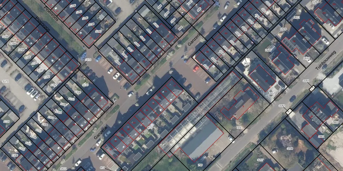 Het perceel waarop Ganzerik 72 staat heeft een oppervlakte van 1305 m². Dit is een zeer groot perceel. De perceeloppervlakte wordt geregistreerd door het Kadaster. Gedetailleerde informatie over de maten van dit perceel kunt u vinden in het rapport Kadastrale kaart met maatvoering van Ganzerik 72.