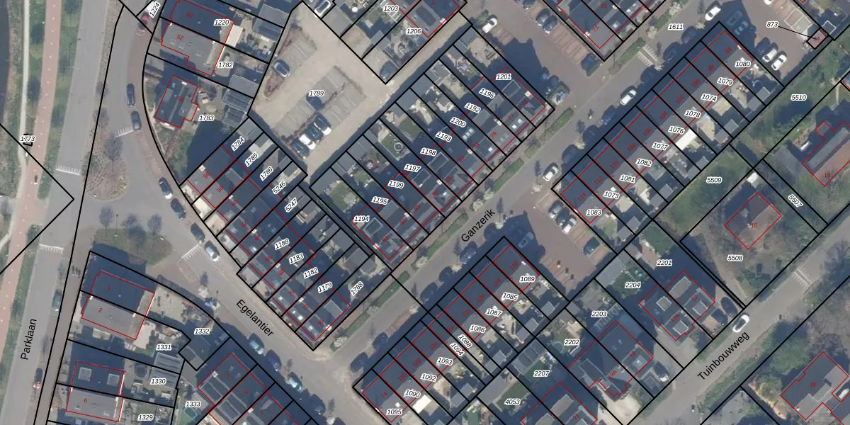 Gebruik de zoekbalk of klik op een perceel voor informatie over de adressen binnen dit perceel.