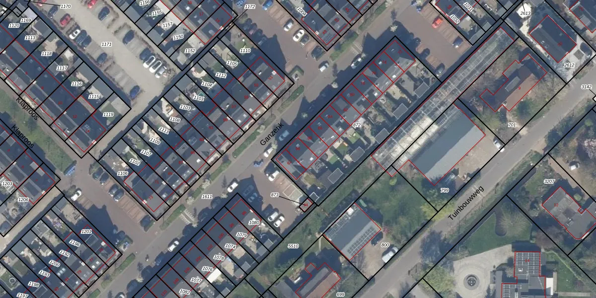 Het perceel waarop Ganzerik 90 staat heeft een oppervlakte van 1305 m². Dit is een zeer groot perceel. De perceeloppervlakte wordt geregistreerd door het Kadaster. Gedetailleerde informatie over de maten van dit perceel kunt u vinden in het rapport Kadastrale kaart met maatvoering van Ganzerik 90.
