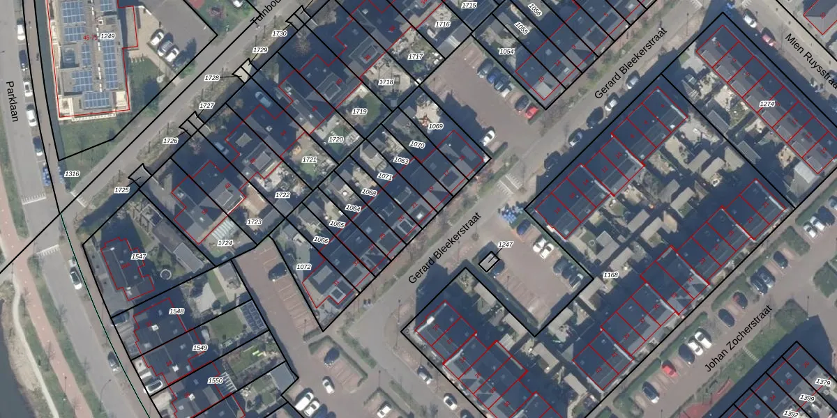 Gebruik de zoekbalk of klik op een perceel voor informatie over de adressen binnen dit perceel.