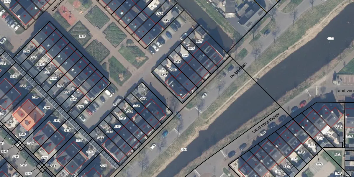 Het perceel waarop Gerardshoeve 1 staat heeft een oppervlakte van 173 m². Dit is een middelgroot perceel. De perceeloppervlakte wordt geregistreerd door het Kadaster. Gedetailleerde informatie over de maten van dit perceel kunt u vinden in het rapport Kadastrale kaart met maatvoering van Gerardshoeve 1.