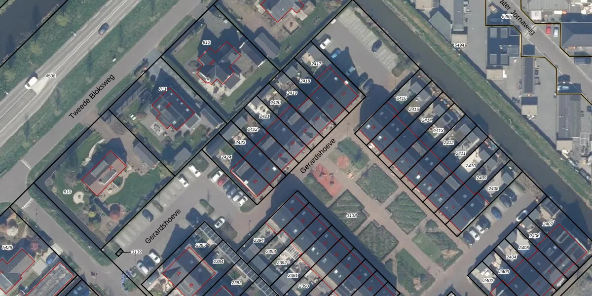 Gebruik de zoekbalk of klik op een perceel voor informatie over de adressen binnen dit perceel.