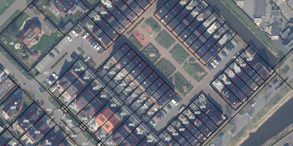 Gerardshoeve 23 is gelegen op kadastraal perceel WDV01E2390. Deze kadastrale aanduiding is uniek en wordt gebruikt door het Kadaster om eigendomsrechten en andere zakelijke rechten vast te leggen. Het perceel maakt onderdeel uit van de kadastrale gemeente Waddinxveen.