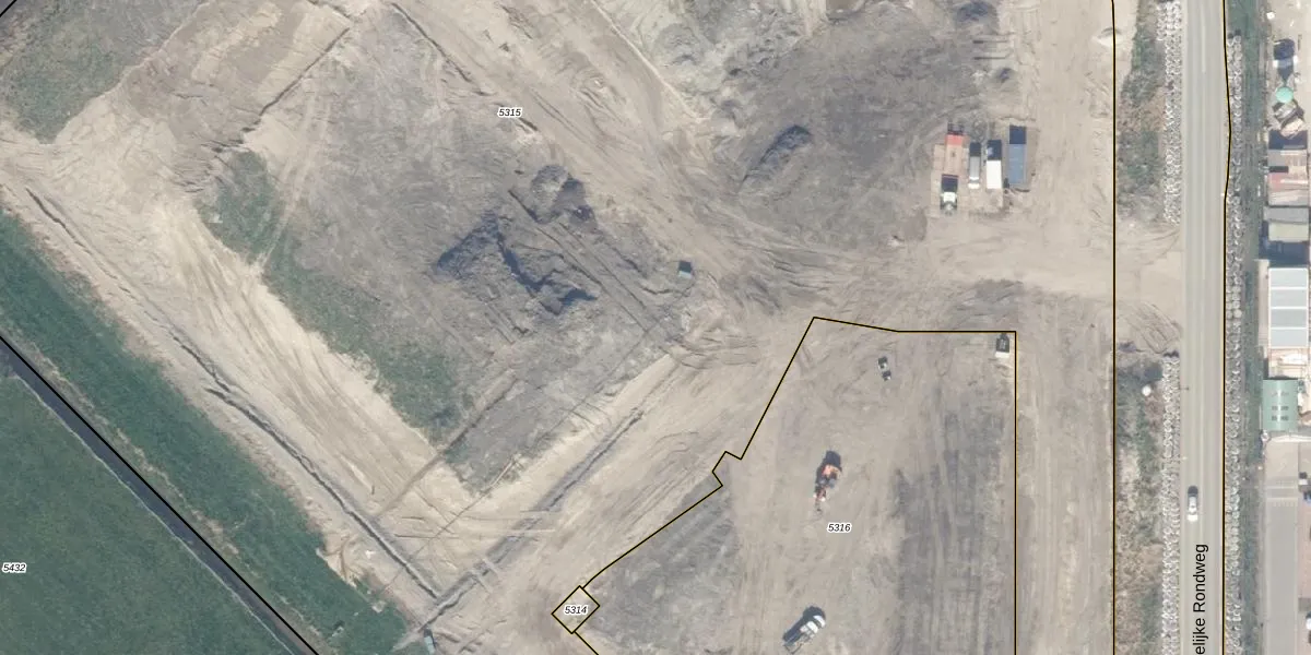 Het perceel waarop het adres ligt is WDV01-E-5315. De afkorting 'WDV01' staat voor kadastrale gemeente Waddinxveen. Het perceel is met 2,6 ha relatief groot. Het gemiddelde ligt in de kadastrale gemeente Waddinxveen op 2158,97 m². Het kleinste perceel in de kadastrale gemeente is 0 m² groot. De grootste perceeloppervlakte is 49,8 ha. Op het perceel zijn 108 adressen aanwezig. In de Basisregistratie Kadaster (BRK) werden de grenzen van het perceel geregistreerd op 27-05-2025.