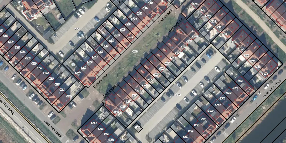 Grenenhout 13 is gelegen op kadastraal perceel WDV01E3682. Deze kadastrale aanduiding is uniek en wordt gebruikt door het Kadaster om eigendomsrechten en andere zakelijke rechten vast te leggen. Het perceel maakt onderdeel uit van de kadastrale gemeente Waddinxveen.