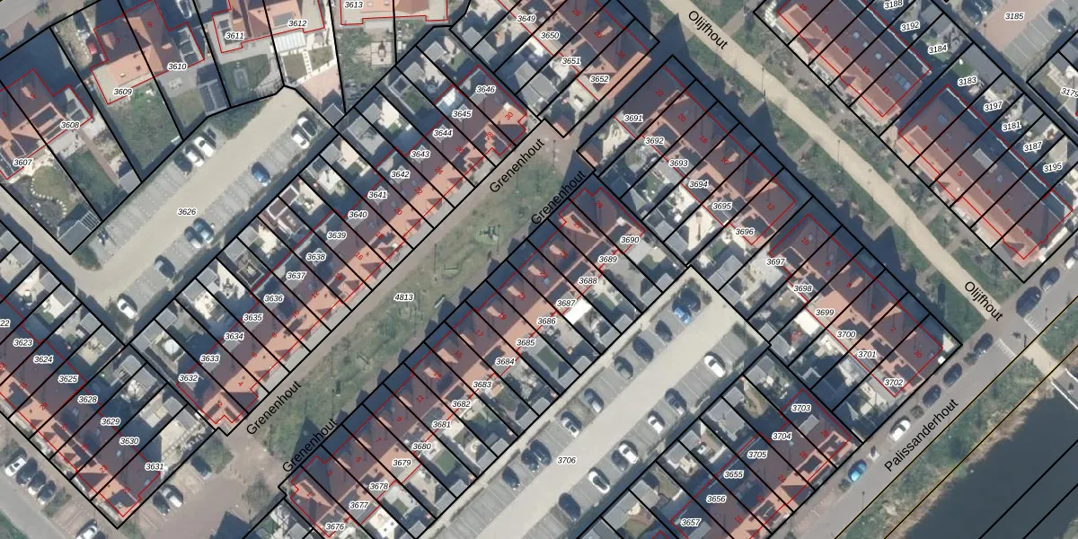 Grenenhout 23 is gelegen op kadastraal perceel WDV01E3687. Deze kadastrale aanduiding is uniek en wordt gebruikt door het Kadaster om eigendomsrechten en andere zakelijke rechten vast te leggen. Het perceel maakt onderdeel uit van de kadastrale gemeente Waddinxveen.