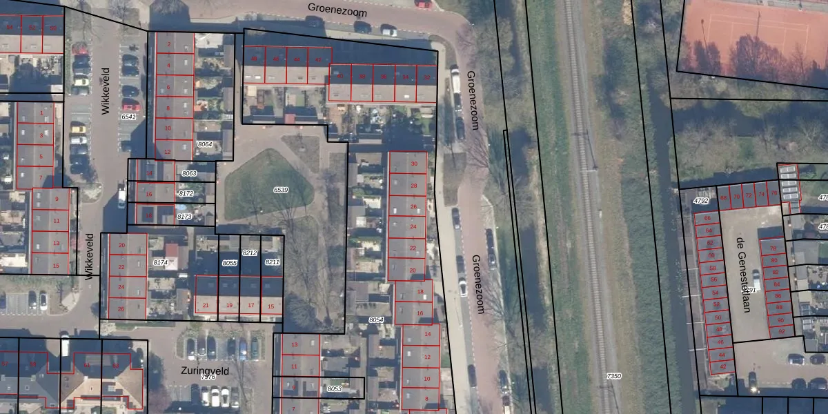 Groenezoom 26 is gelegen op kadastraal perceel WDV01B8054. Deze kadastrale aanduiding is uniek en wordt gebruikt door het Kadaster om eigendomsrechten en andere zakelijke rechten vast te leggen. Het perceel maakt onderdeel uit van de kadastrale gemeente Waddinxveen.