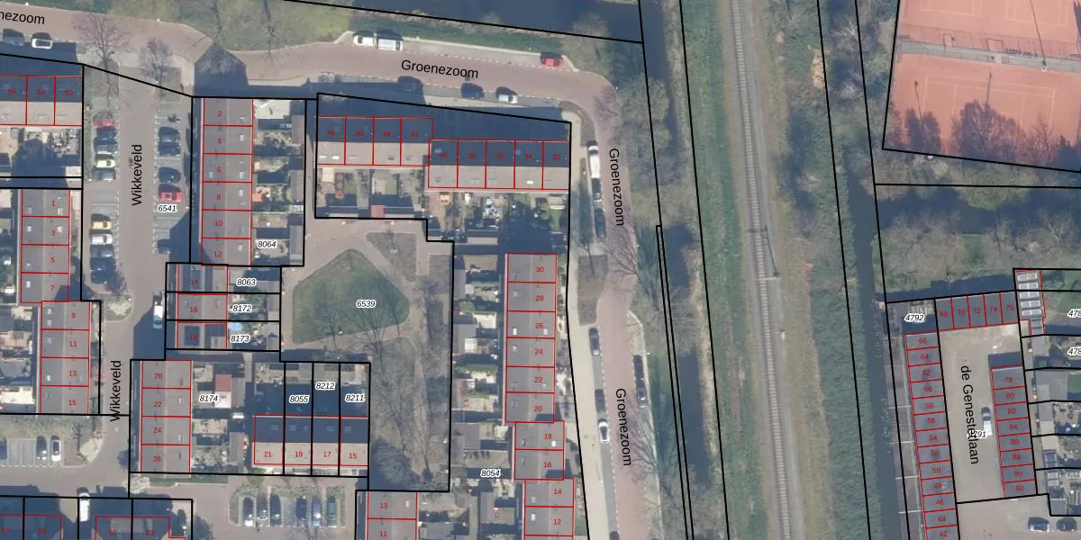 Groenezoom 30 is gelegen op kadastraal perceel WDV01B8054. Deze kadastrale aanduiding is uniek en wordt gebruikt door het Kadaster om eigendomsrechten en andere zakelijke rechten vast te leggen. Het perceel maakt onderdeel uit van de kadastrale gemeente Waddinxveen.