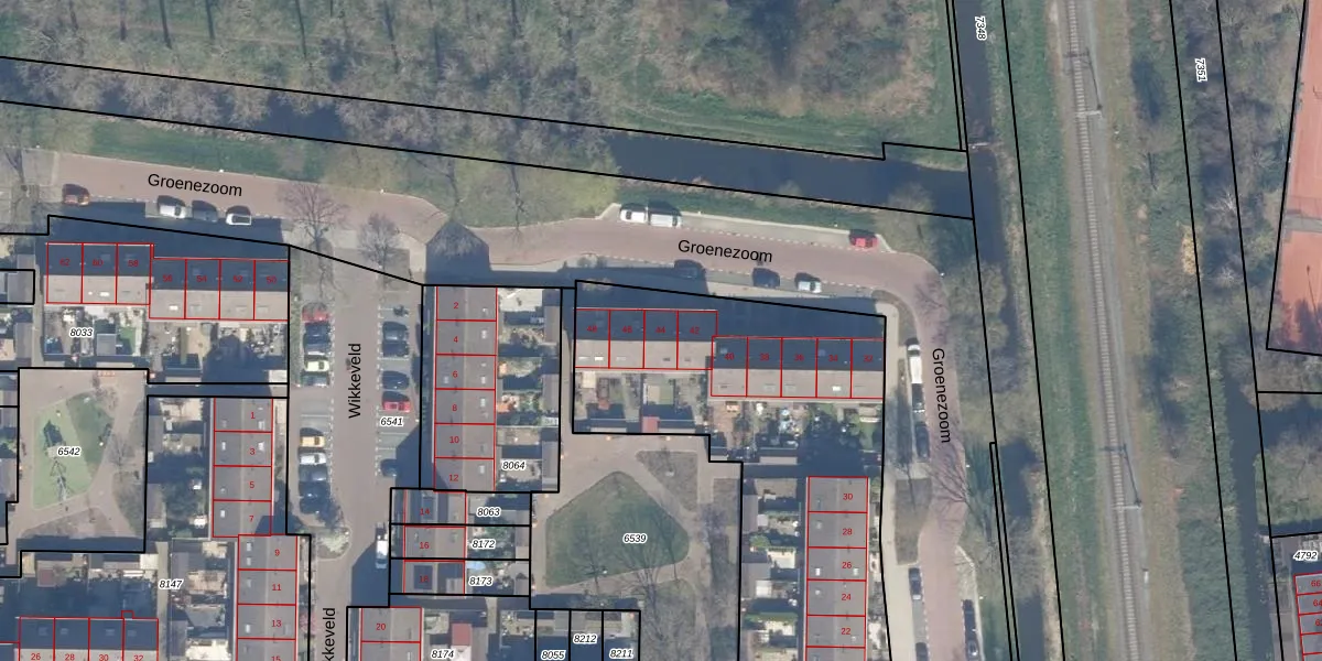 Groenezoom 44 is gelegen op kadastraal perceel WDV01B8054. Deze kadastrale aanduiding is uniek en wordt gebruikt door het Kadaster om eigendomsrechten en andere zakelijke rechten vast te leggen. Het perceel maakt onderdeel uit van de kadastrale gemeente Waddinxveen.