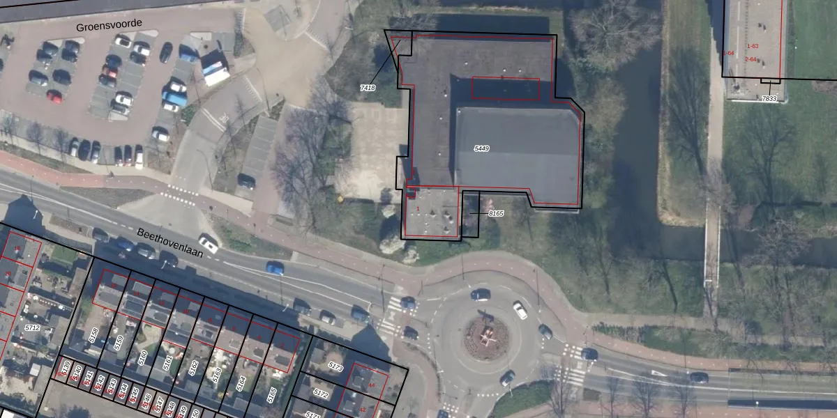 Het perceel waarop Groensvoorde 1 staat heeft een oppervlakte van 1739 m². Dit is een zeer groot perceel. De perceeloppervlakte wordt geregistreerd door het Kadaster. Gedetailleerde informatie over de maten van dit perceel kunt u vinden in het rapport Kadastrale kaart met maatvoering van Groensvoorde 1.
