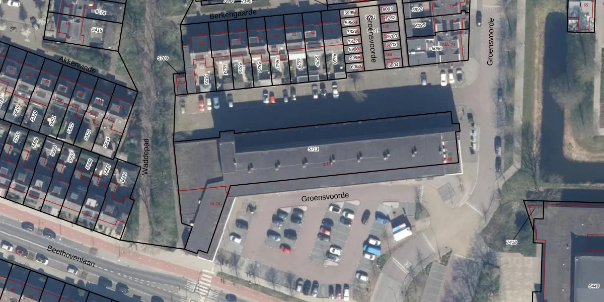 Groensvoorde 64 is gelegen op kadastraal perceel WDV01B5711. Deze kadastrale aanduiding is uniek en wordt gebruikt door het Kadaster om eigendomsrechten en andere zakelijke rechten vast te leggen. Het perceel maakt onderdeel uit van de kadastrale gemeente Waddinxveen.