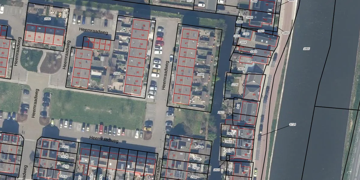 Heemraadweg 37 is gelegen op kadastraal perceel WDV01D2594. Deze kadastrale aanduiding is uniek en wordt gebruikt door het Kadaster om eigendomsrechten en andere zakelijke rechten vast te leggen. Het perceel maakt onderdeel uit van de kadastrale gemeente Waddinxveen.