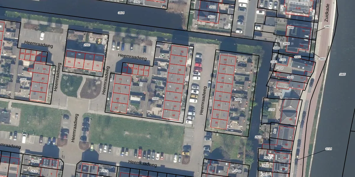 Heemraadweg 59 is gelegen op kadastraal perceel WDV01D2593. Deze kadastrale aanduiding is uniek en wordt gebruikt door het Kadaster om eigendomsrechten en andere zakelijke rechten vast te leggen. Het perceel maakt onderdeel uit van de kadastrale gemeente Waddinxveen.