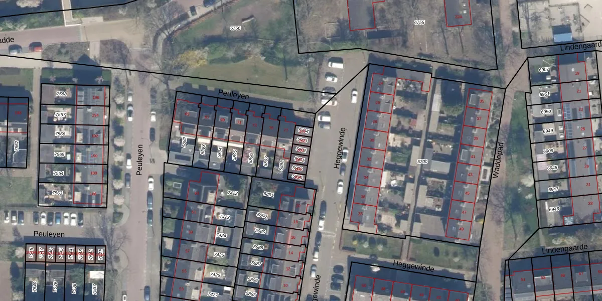 Heggewinde 20-D is gelegen op kadastraal perceel WDV01B5902. Deze kadastrale aanduiding is uniek en wordt gebruikt door het Kadaster om eigendomsrechten en andere zakelijke rechten vast te leggen. Het perceel maakt onderdeel uit van de kadastrale gemeente Waddinxveen.