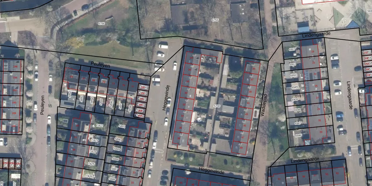 Heggewinde 30 is gelegen op kadastraal perceel WDV01B5700. Deze kadastrale aanduiding is uniek en wordt gebruikt door het Kadaster om eigendomsrechten en andere zakelijke rechten vast te leggen. Het perceel maakt onderdeel uit van de kadastrale gemeente Waddinxveen.