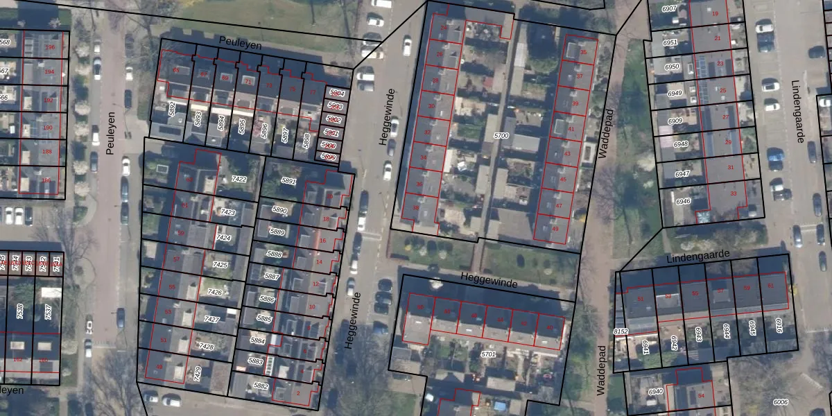 Heggewinde 38 is gelegen op kadastraal perceel WDV01B5700. Deze kadastrale aanduiding is uniek en wordt gebruikt door het Kadaster om eigendomsrechten en andere zakelijke rechten vast te leggen. Het perceel maakt onderdeel uit van de kadastrale gemeente Waddinxveen.