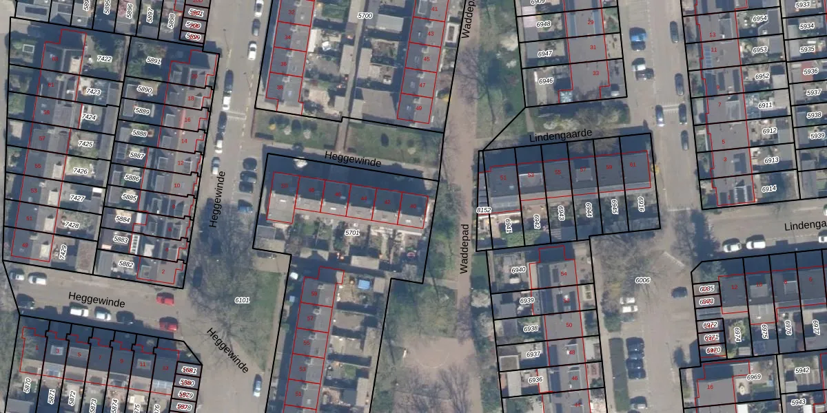 Heggewinde 40 is gelegen op kadastraal perceel WDV01B5701. Deze kadastrale aanduiding is uniek en wordt gebruikt door het Kadaster om eigendomsrechten en andere zakelijke rechten vast te leggen. Het perceel maakt onderdeel uit van de kadastrale gemeente Waddinxveen.
