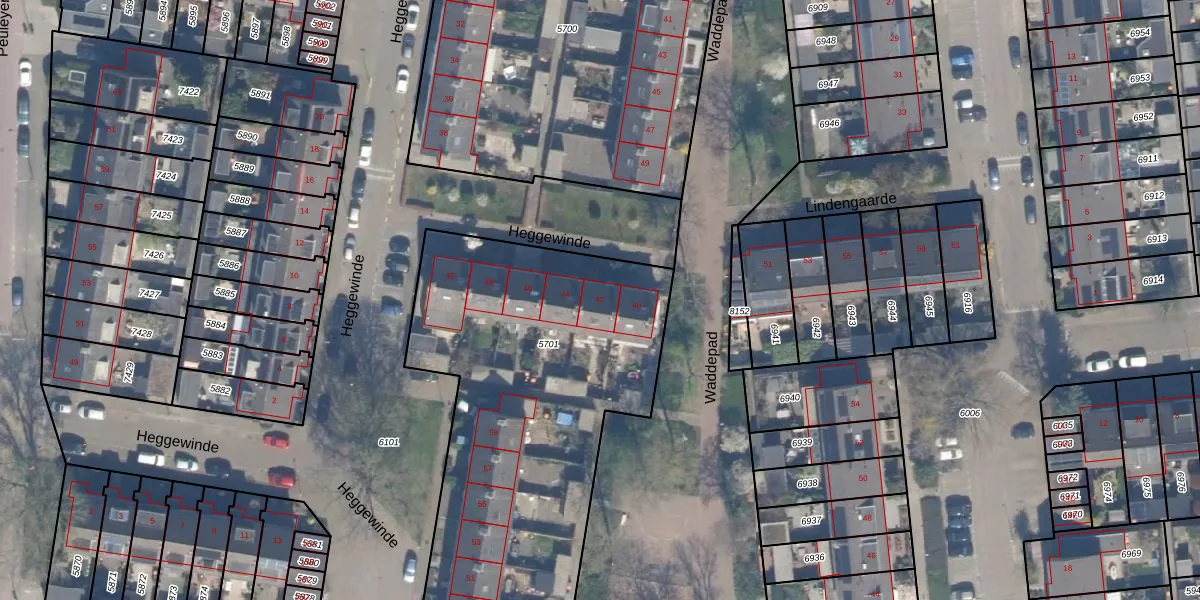 Heggewinde 42 is gelegen op kadastraal perceel WDV01B5701. Deze kadastrale aanduiding is uniek en wordt gebruikt door het Kadaster om eigendomsrechten en andere zakelijke rechten vast te leggen. Het perceel maakt onderdeel uit van de kadastrale gemeente Waddinxveen.