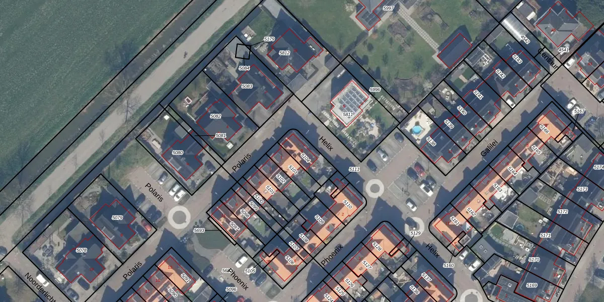 Gebruik de zoekbalk of klik op een perceel voor informatie over de adressen binnen dit perceel.