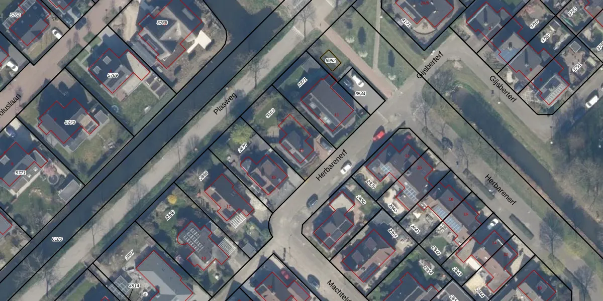 Het adres ligt op het perceel WDV01-C-3163, dat zich in de kadastrale gemeente Waddinxveen bevindt. Het perceel is kleiner dan gemiddeld in Waddinxveen. Het perceel is 440 m² groot, terwijl het gemiddelde ligt op 2161,35 m². De grootste perceeloppervlakte in de kadastrale gemeente is 49,8 ha. De kleinste oppervlakte bedraagt 0 m². Dit is het enige adres dat aanwezig is op het perceel. De laatste wijziging in het de Basisregistratie Kadaster (BRK) was op 10-10-2003.