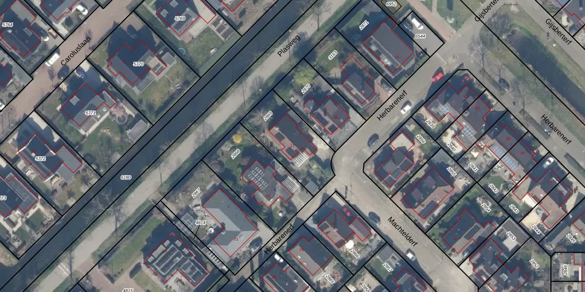Herbarenerf 17 is gelegen op kadastraal perceel WDV01C2869. Deze kadastrale aanduiding is uniek en wordt gebruikt door het Kadaster om eigendomsrechten en andere zakelijke rechten vast te leggen. Het perceel maakt onderdeel uit van de kadastrale gemeente Waddinxveen.