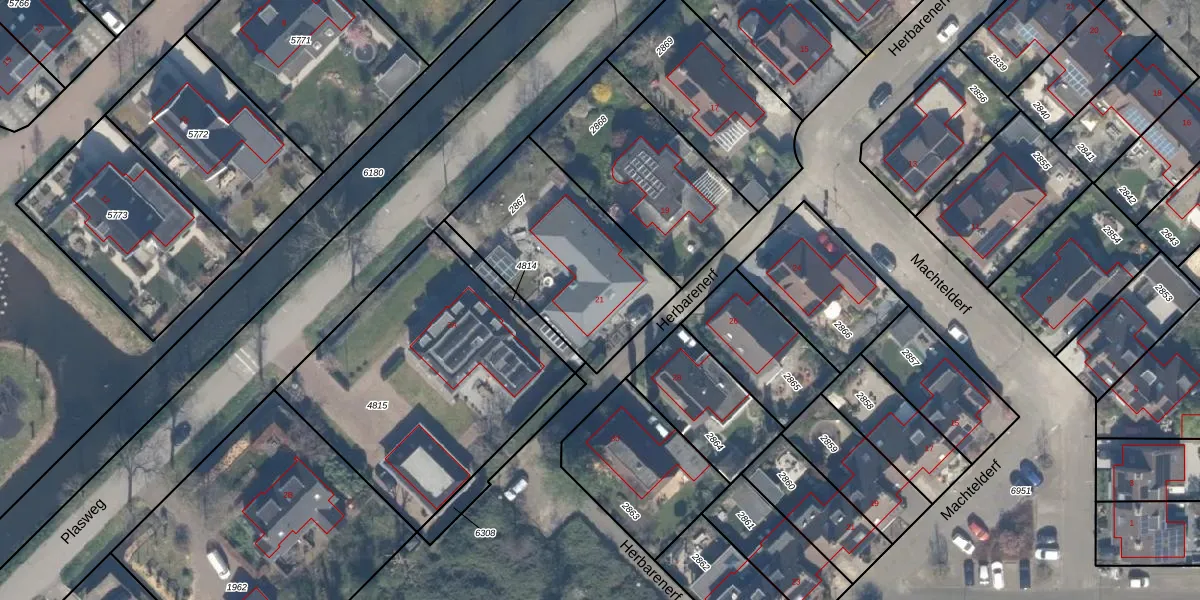 Het perceel waarop Herbarenerf 21 staat heeft een oppervlakte van 719 m². Dit is een groot perceel. De perceeloppervlakte wordt geregistreerd door het Kadaster. Gedetailleerde informatie over de maten van dit perceel kunt u vinden in het rapport Kadastrale kaart met maatvoering van Herbarenerf 21.