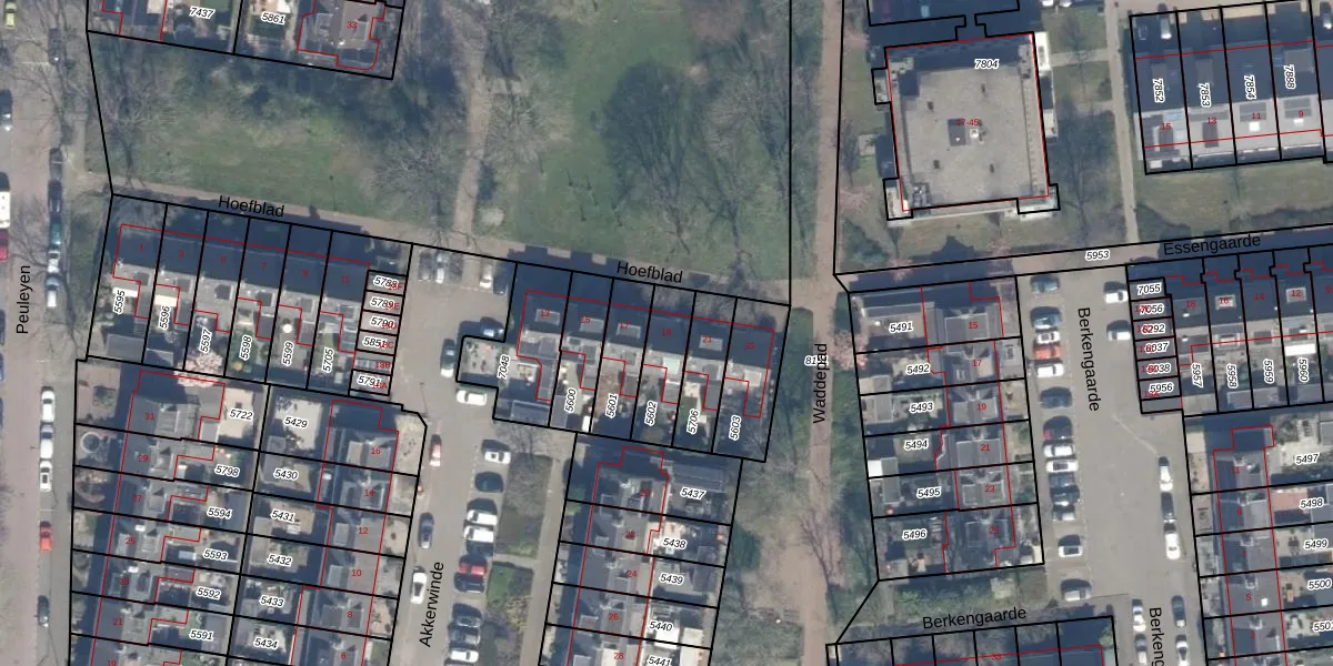 Hoefblad 19 is gelegen op kadastraal perceel WDV01B5602. Deze kadastrale aanduiding is uniek en wordt gebruikt door het Kadaster om eigendomsrechten en andere zakelijke rechten vast te leggen. Het perceel maakt onderdeel uit van de kadastrale gemeente Waddinxveen.