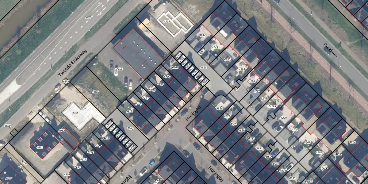 Gebruik de zoekbalk of klik op een perceel voor informatie over de adressen binnen dit perceel.