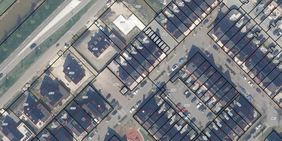 Honingbij 39 is gelegen op kadastraal perceel WDV01E4814. Deze kadastrale aanduiding is uniek en wordt gebruikt door het Kadaster om eigendomsrechten en andere zakelijke rechten vast te leggen. Het perceel maakt onderdeel uit van de kadastrale gemeente Waddinxveen.