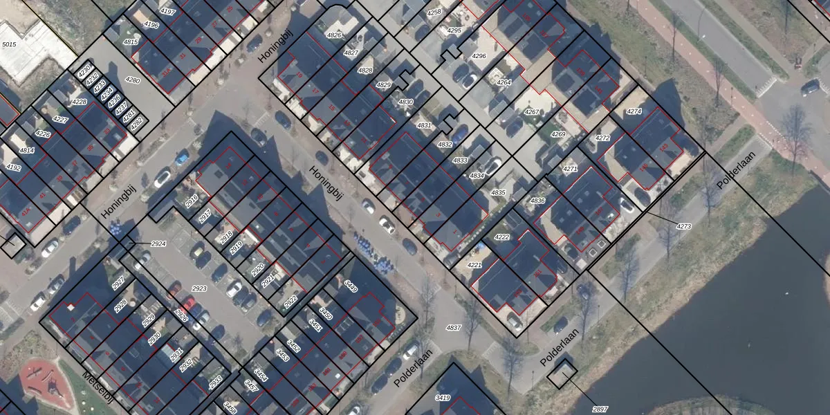Het perceel waarop Honingbij 5 staat heeft een oppervlakte van 163 m². Dit is een middelgroot perceel. De perceeloppervlakte wordt geregistreerd door het Kadaster. Gedetailleerde informatie over de maten van dit perceel kunt u vinden in het rapport Kadastrale kaart met maatvoering van Honingbij 5.