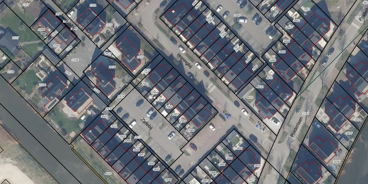Gebruik de zoekbalk of klik op een perceel voor informatie over de adressen binnen dit perceel.