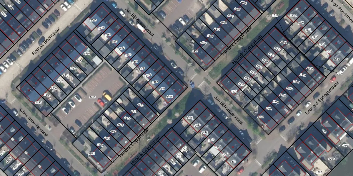 Het perceel waarop Jan Bijhouwerstraat 23 staat heeft een oppervlakte van 157 m². Dit is een middelgroot perceel. De perceeloppervlakte wordt geregistreerd door het Kadaster. Gedetailleerde informatie over de maten van dit perceel kunt u vinden in het rapport Kadastrale kaart met maatvoering van Jan Bijhouwerstraat 23.