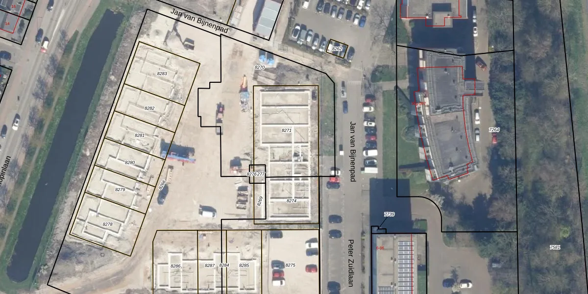 Het perceel waarop het adres ligt is WDV01-B-8271. De afkorting 'WDV01' staat voor kadastrale gemeente Waddinxveen. Het perceel is kleiner dan gemiddeld in Waddinxveen. Het perceel is 655 m² groot, terwijl het gemiddelde ligt op 2158,97 m². Het kleinste perceel in de kadastrale gemeente is 0 m² groot. De grootste perceeloppervlakte is 49,8 ha. Op het perceel zijn 11 adressen aanwezig. De laatste wijziging in het de Basisregistratie Kadaster (BRK) was op 17-10-2024.