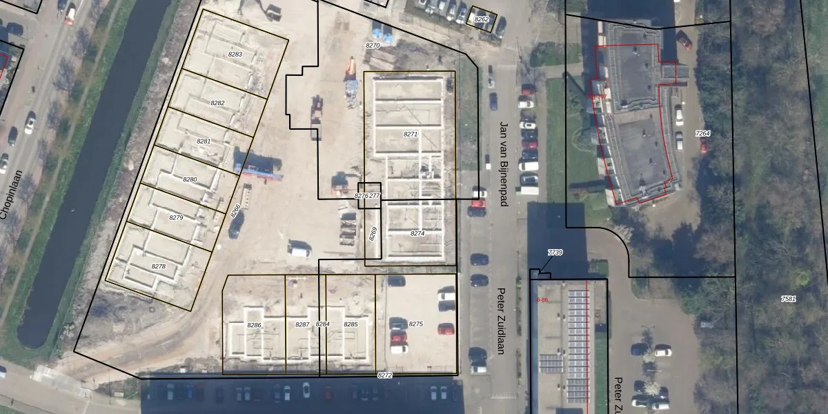 Het perceel waarop het adres ligt is WDV01-B-8274. De afkorting 'WDV01' staat voor kadastrale gemeente Waddinxveen. Het perceel is kleiner dan gemiddeld in Waddinxveen. Het perceel is 297 m² groot, terwijl het gemiddelde ligt op 2158,97 m². Het kleinste perceel in de kadastrale gemeente is 0 m² groot. De grootste perceeloppervlakte is 49,8 ha. Op het perceel zijn 5 adressen aanwezig. De huidige grenzen van het perceel zijn digitaal in de Basisregistratie Kadaster (BRK) geregistreerd op 17-10-2024.