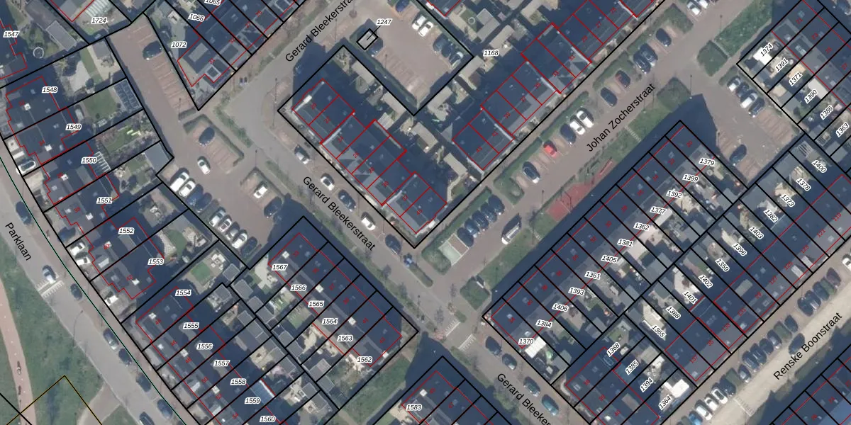 Het adres ligt op het perceel WDV01-E-1168, dat zich in de kadastrale gemeente Waddinxveen bevindt. Het perceel is met 3535 m² relatief groot. Het gemiddelde ligt in de kadastrale gemeente Waddinxveen op 2158,97 m². De grootste perceeloppervlakte in de kadastrale gemeente is 49,8 ha. De kleinste oppervlakte bedraagt 0 m². Er zijn 28 adressen aanwezig op het perceel. De huidige grenzen van het perceel zijn digitaal in de Basisregistratie Kadaster (BRK) geregistreerd op 31-03-2020.
