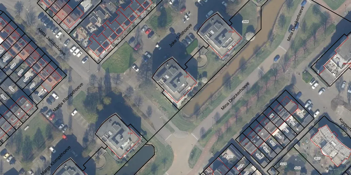 Joke Smithoeve 21 is gelegen op kadastraal perceel WDV01C3484. Deze kadastrale aanduiding is uniek en wordt gebruikt door het Kadaster om eigendomsrechten en andere zakelijke rechten vast te leggen. Het perceel maakt onderdeel uit van de kadastrale gemeente Waddinxveen.