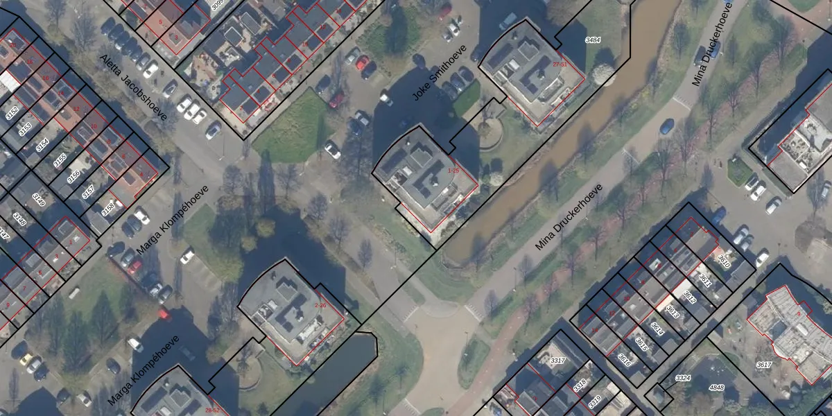 Joke Smithoeve 3 is gelegen op kadastraal perceel WDV01C3484. Deze kadastrale aanduiding is uniek en wordt gebruikt door het Kadaster om eigendomsrechten en andere zakelijke rechten vast te leggen. Het perceel maakt onderdeel uit van de kadastrale gemeente Waddinxveen.