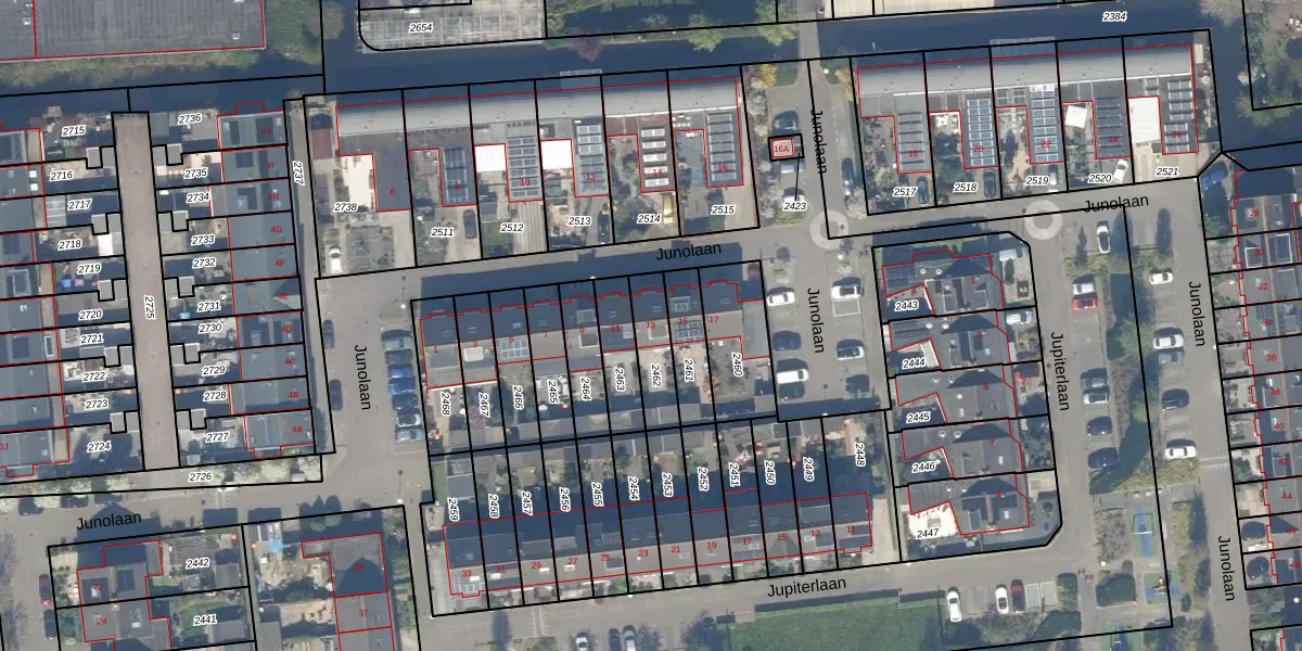 Junolaan 13 is gelegen op kadastraal perceel WDV01F2462. Deze kadastrale aanduiding is uniek en wordt gebruikt door het Kadaster om eigendomsrechten en andere zakelijke rechten vast te leggen. Het perceel maakt onderdeel uit van de kadastrale gemeente Waddinxveen.