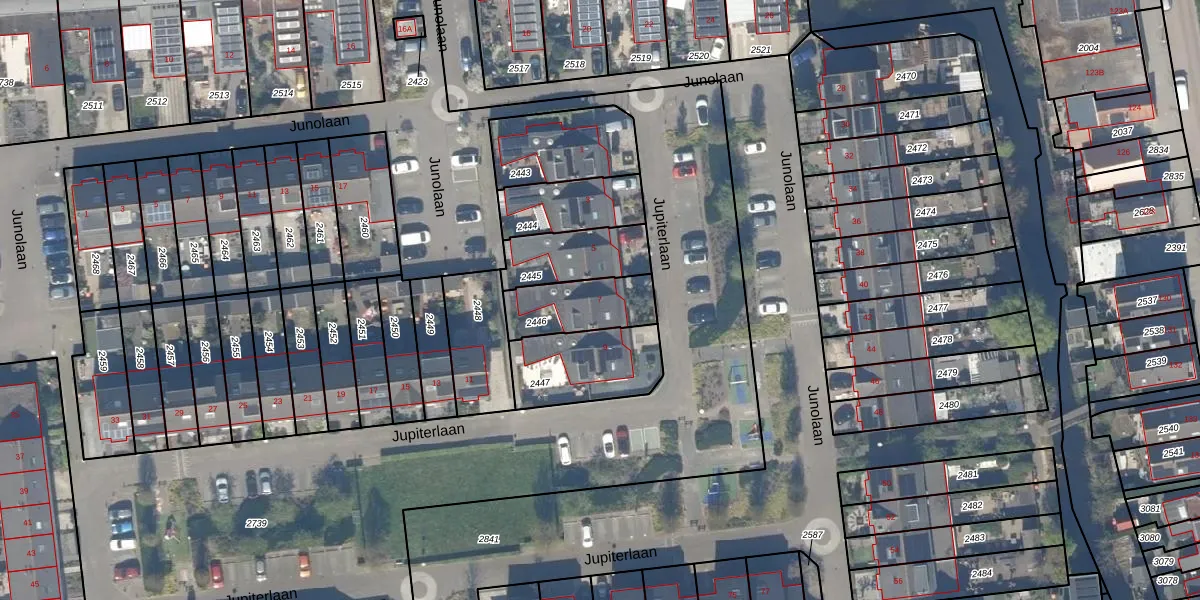 Jupiterlaan 7 is gelegen op kadastraal perceel WDV01F2446. Deze kadastrale aanduiding is uniek en wordt gebruikt door het Kadaster om eigendomsrechten en andere zakelijke rechten vast te leggen. Het perceel maakt onderdeel uit van de kadastrale gemeente Waddinxveen.