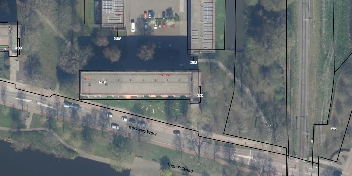 Kerkweg-West 252 is gelegen op kadastraal perceel WDV01B7203. Deze kadastrale aanduiding is uniek en wordt gebruikt door het Kadaster om eigendomsrechten en andere zakelijke rechten vast te leggen. Het perceel maakt onderdeel uit van de kadastrale gemeente Waddinxveen.
