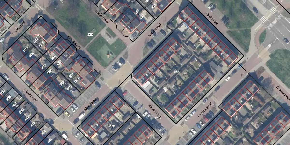 Het perceel waarop Kievitdreef 15 staat heeft een oppervlakte van 3227 m². Dit is een zeer groot perceel. De perceeloppervlakte wordt geregistreerd door het Kadaster. Gedetailleerde informatie over de maten van dit perceel kunt u vinden in het rapport Kadastrale kaart met maatvoering van Kievitdreef 15.