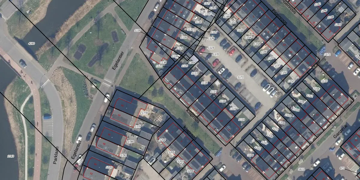Gebruik de zoekbalk of klik op een perceel voor informatie over de adressen binnen dit perceel.